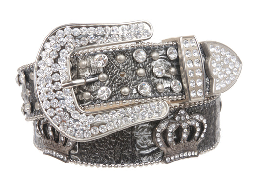 Snap On Rhinestone Crown Silver Circle Studded Genuine Leather Belt