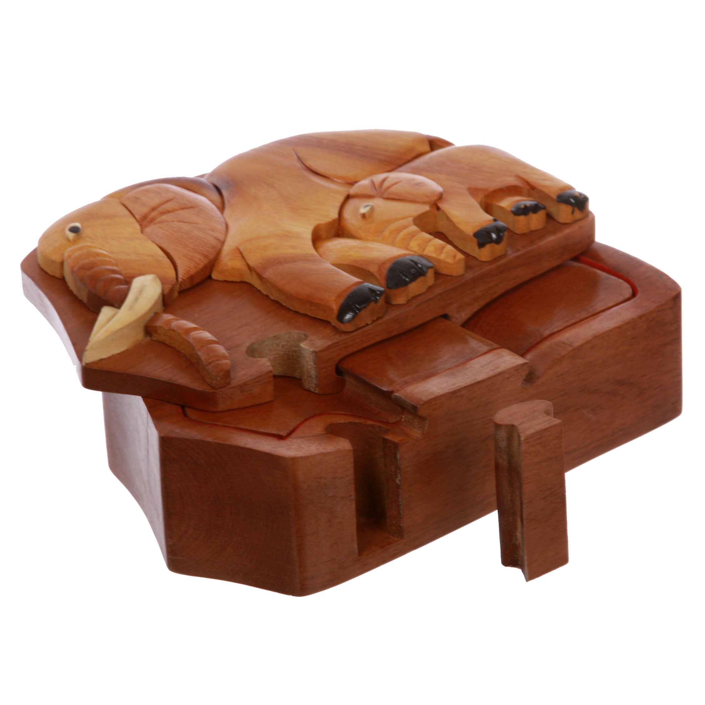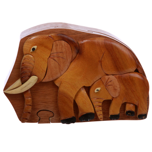 - The surface of wooden puzzle box is decorated with art image - elephants mother and son which is very skillful and beautiful, for you to get unique gifts for your friends and family