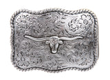Western Longhorn Engraved Belt Buckle