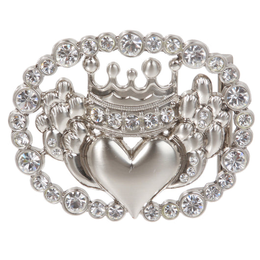 Perforated Rhinestone Crown & Heart Plaque Oval Buckle