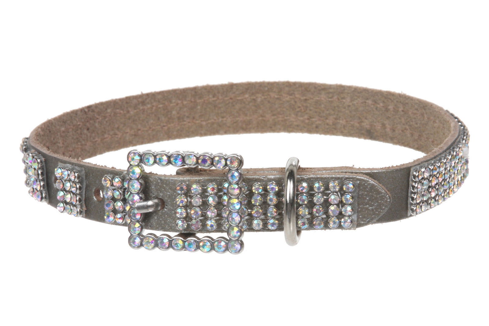 5/8" (15 mm) Genuine Leather Rhinestone Dog Collar