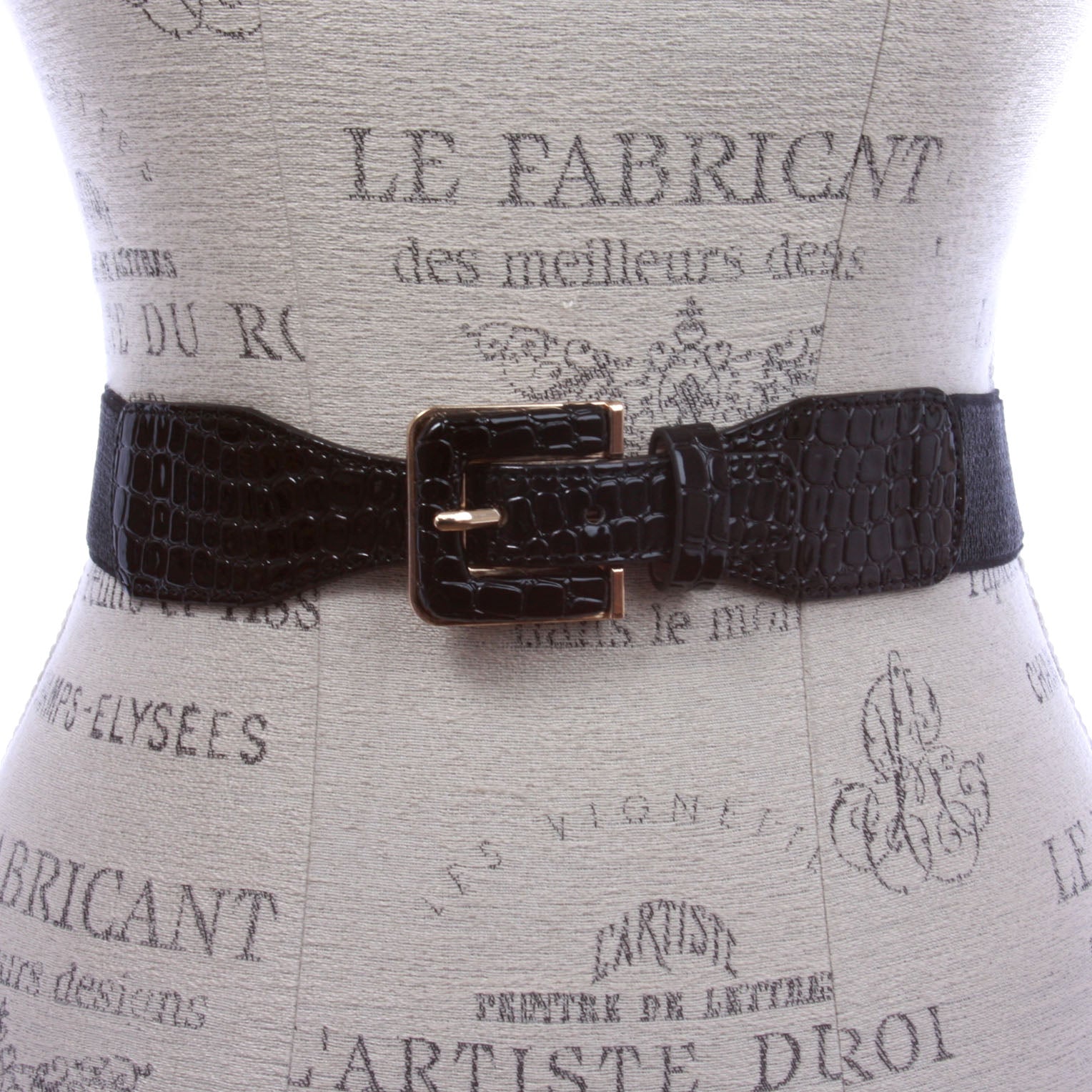 1 1/2" Ladies High Waist Fashion Croco Print Stretch Belt