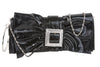 Rhinestone Buckled Metal Circle Let Ruffled Bow Design Patent Evening Bag