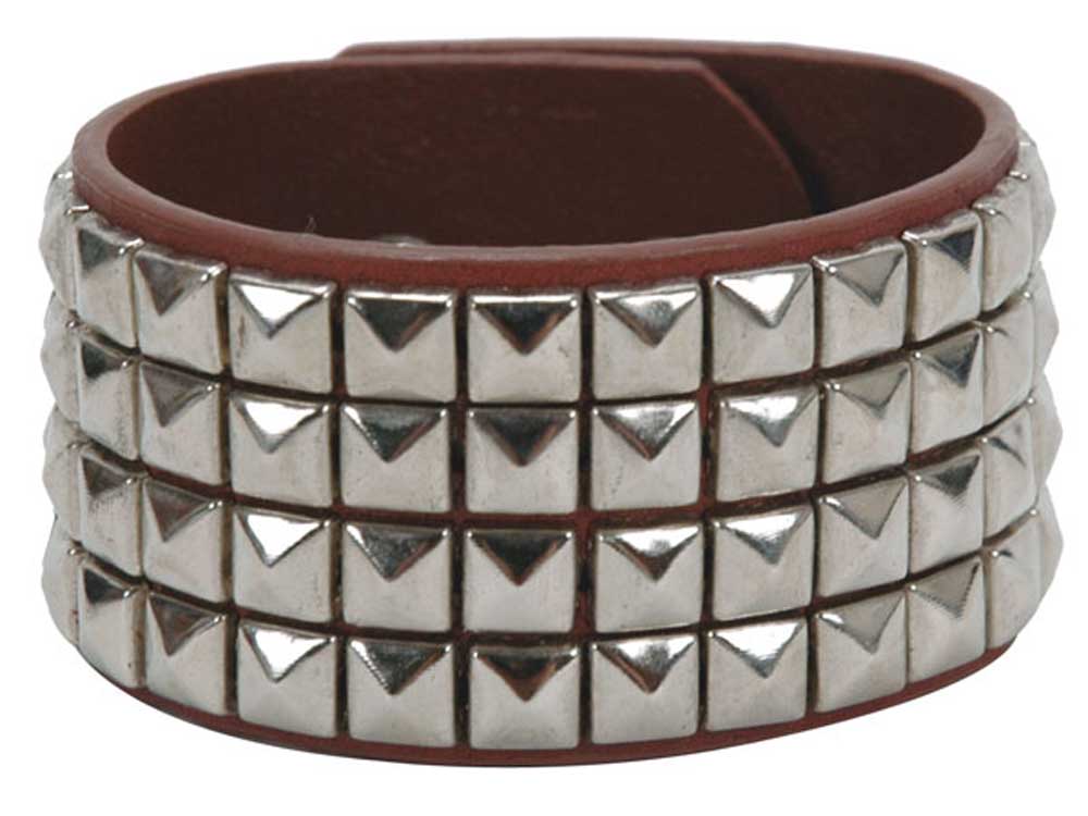 4 Row Punk Rock Star Studded Leather Wrist Band