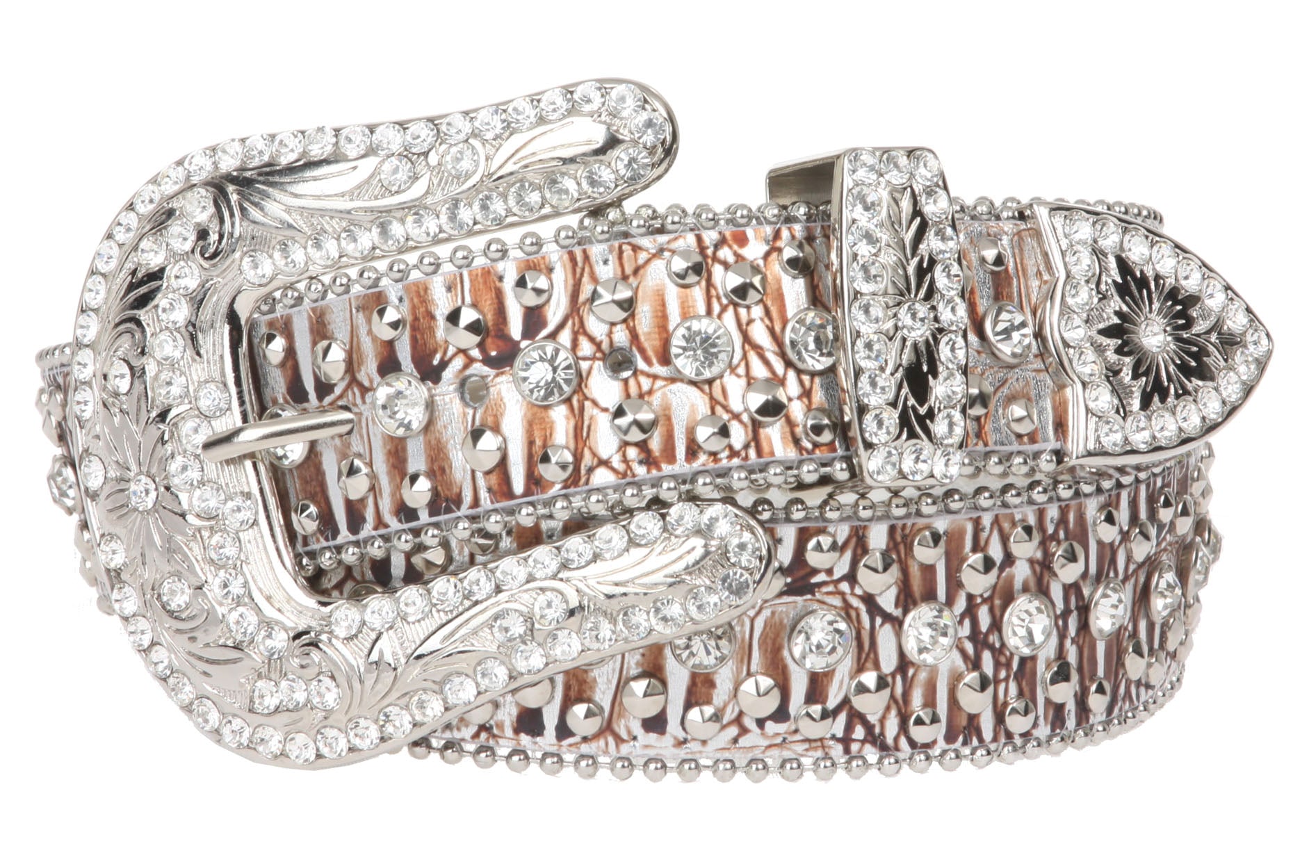 - Imported and assembled in USA with Western rhinestone buckle set, snap on, removable
