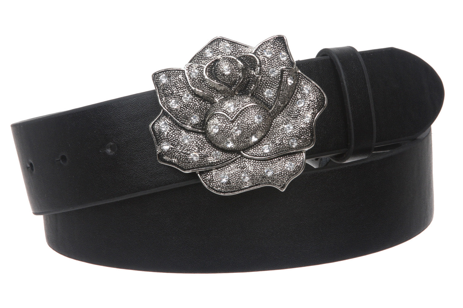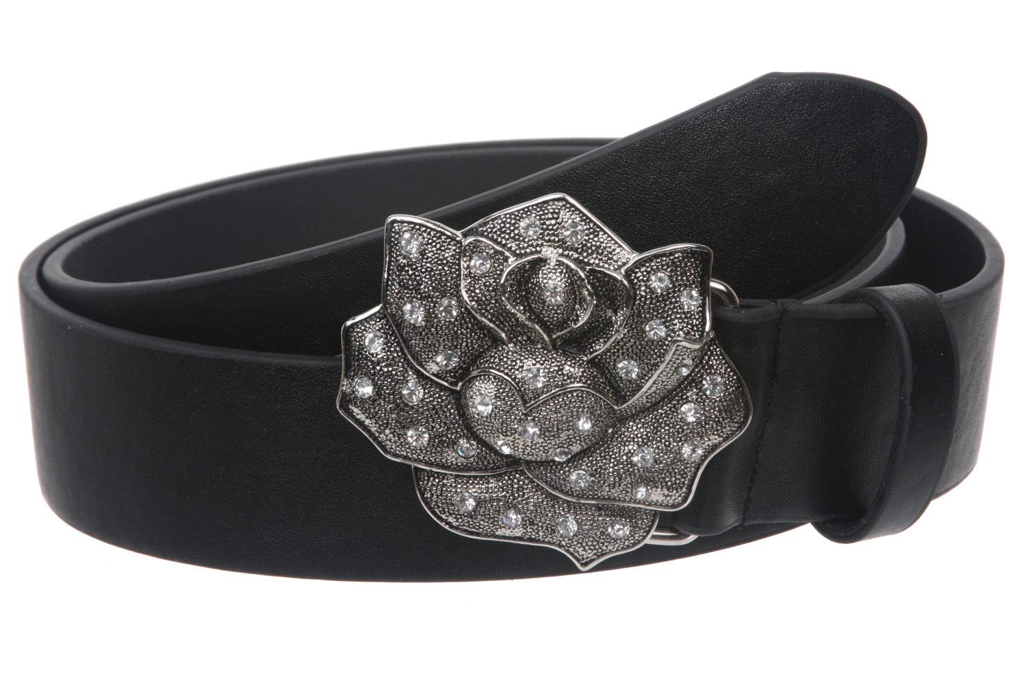 Womens 1 1/2" Rhinestone Rose Flower Belt