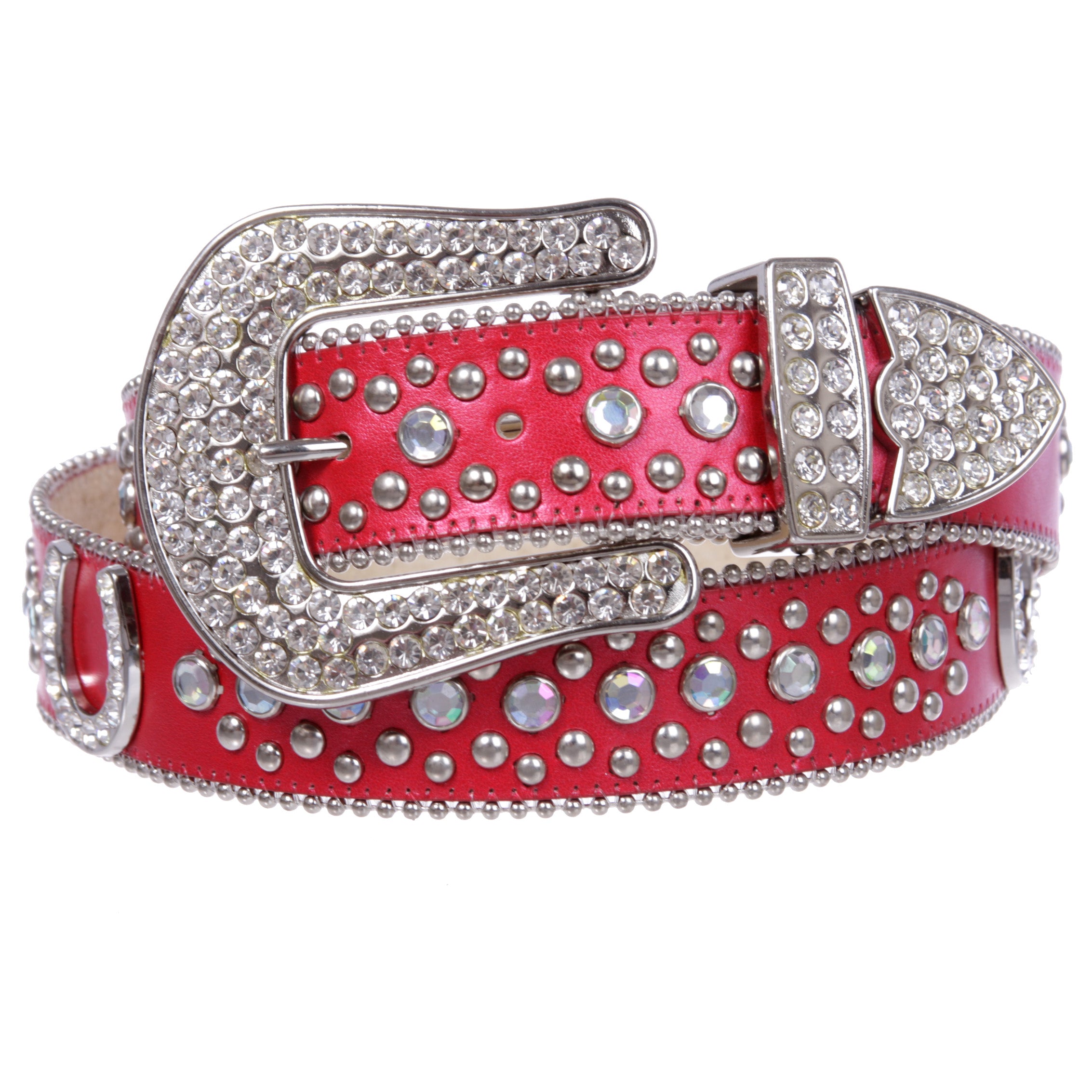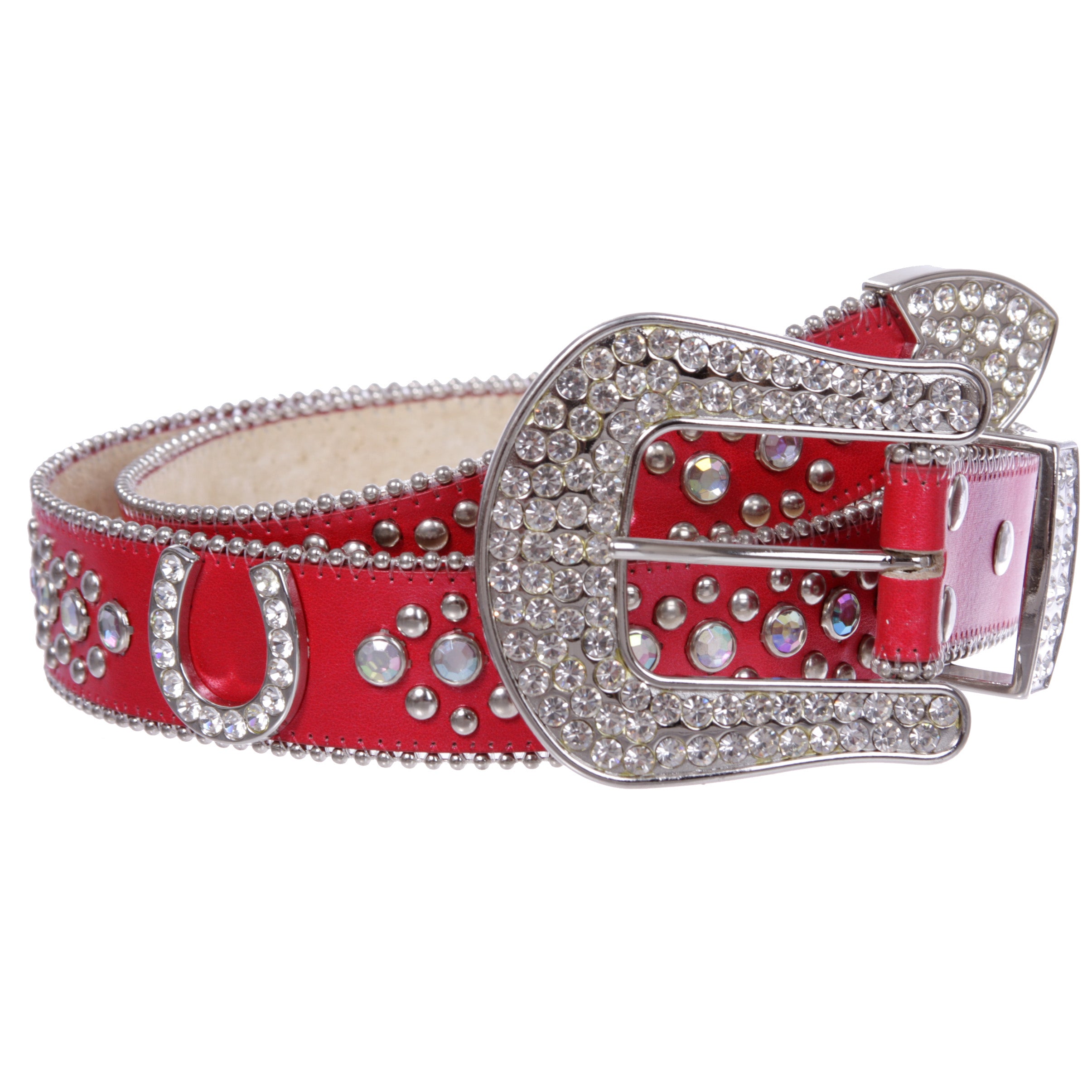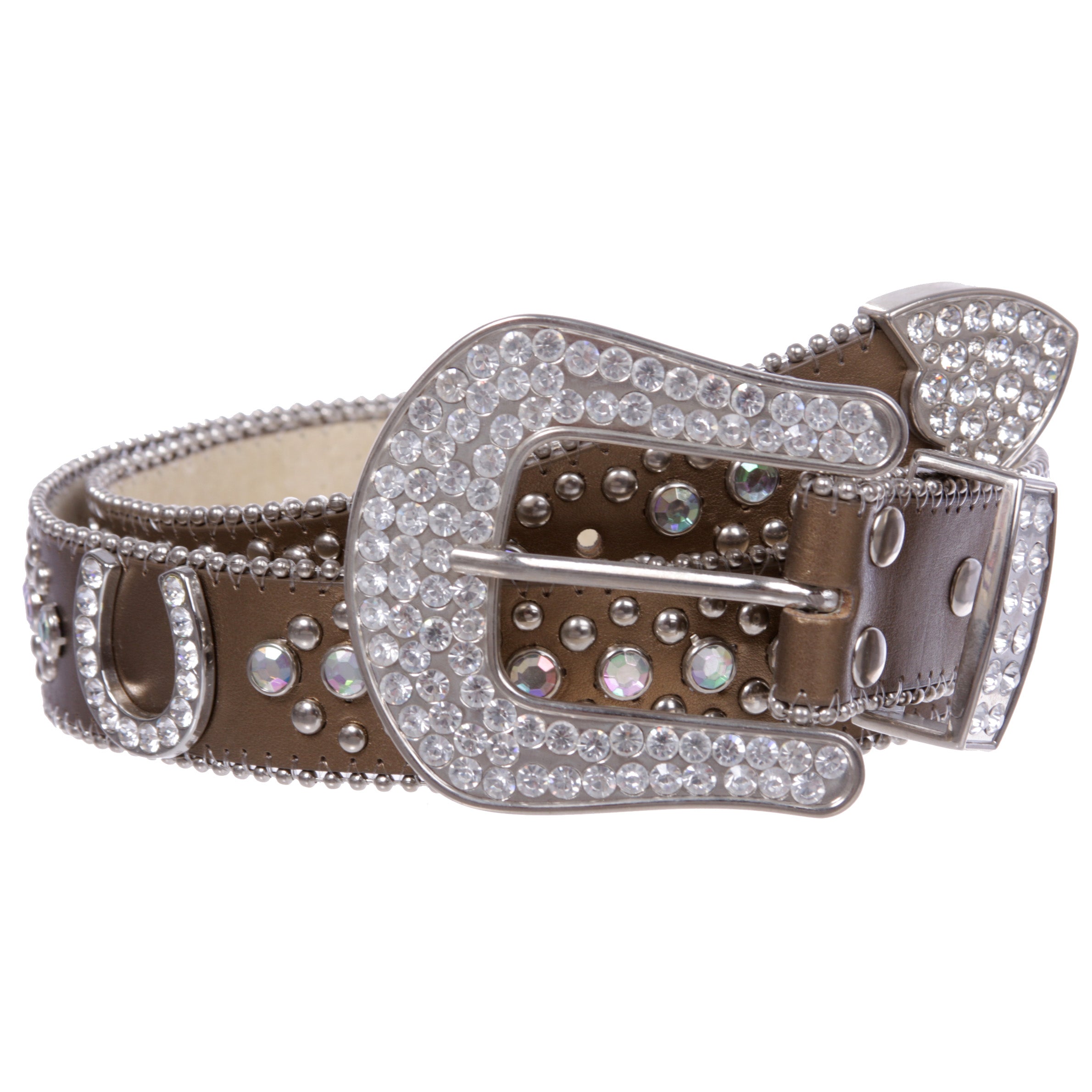 - Rhinestone silver studs and horseshoe conchos with 3 sets western style rhinestone buckle.