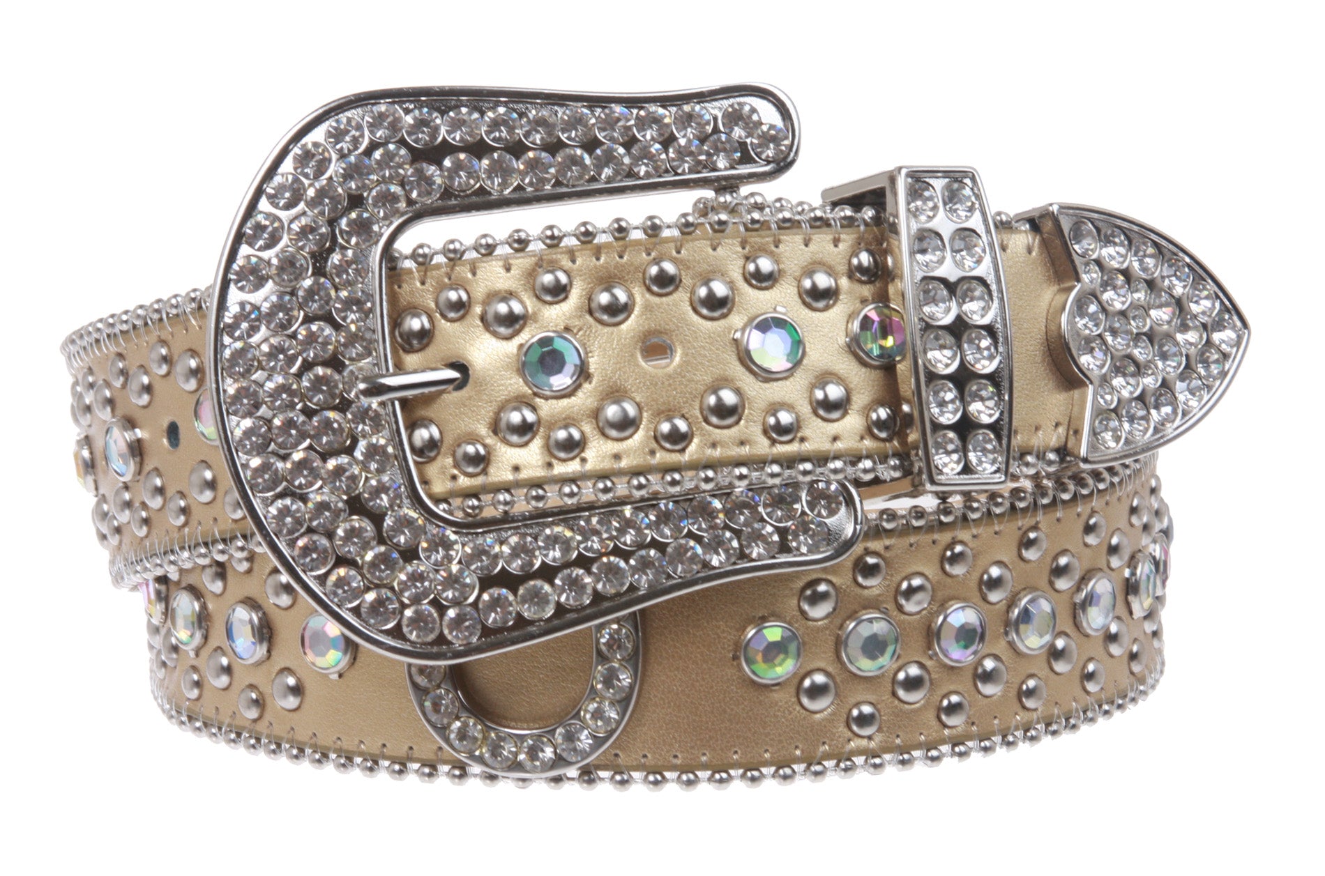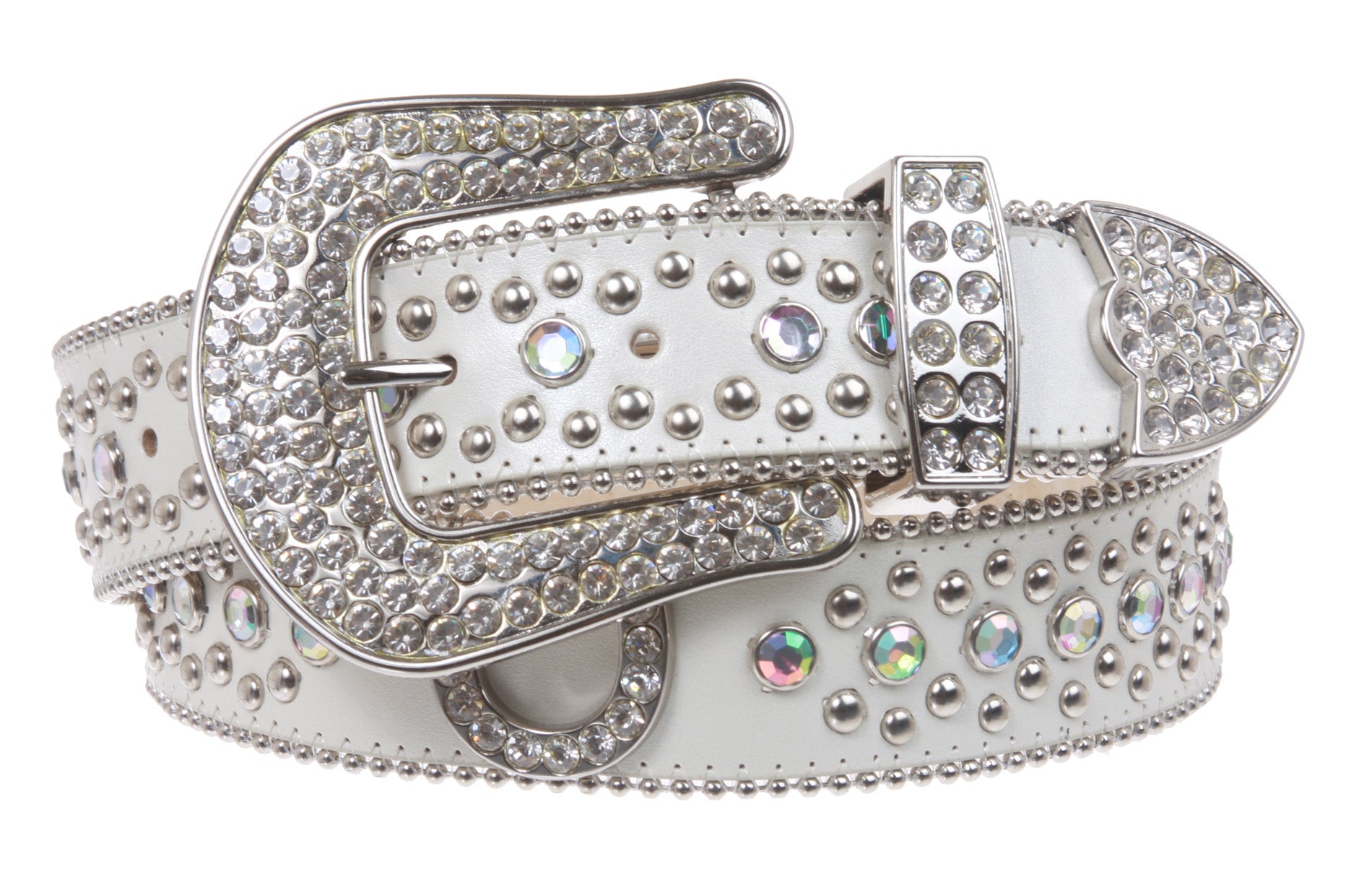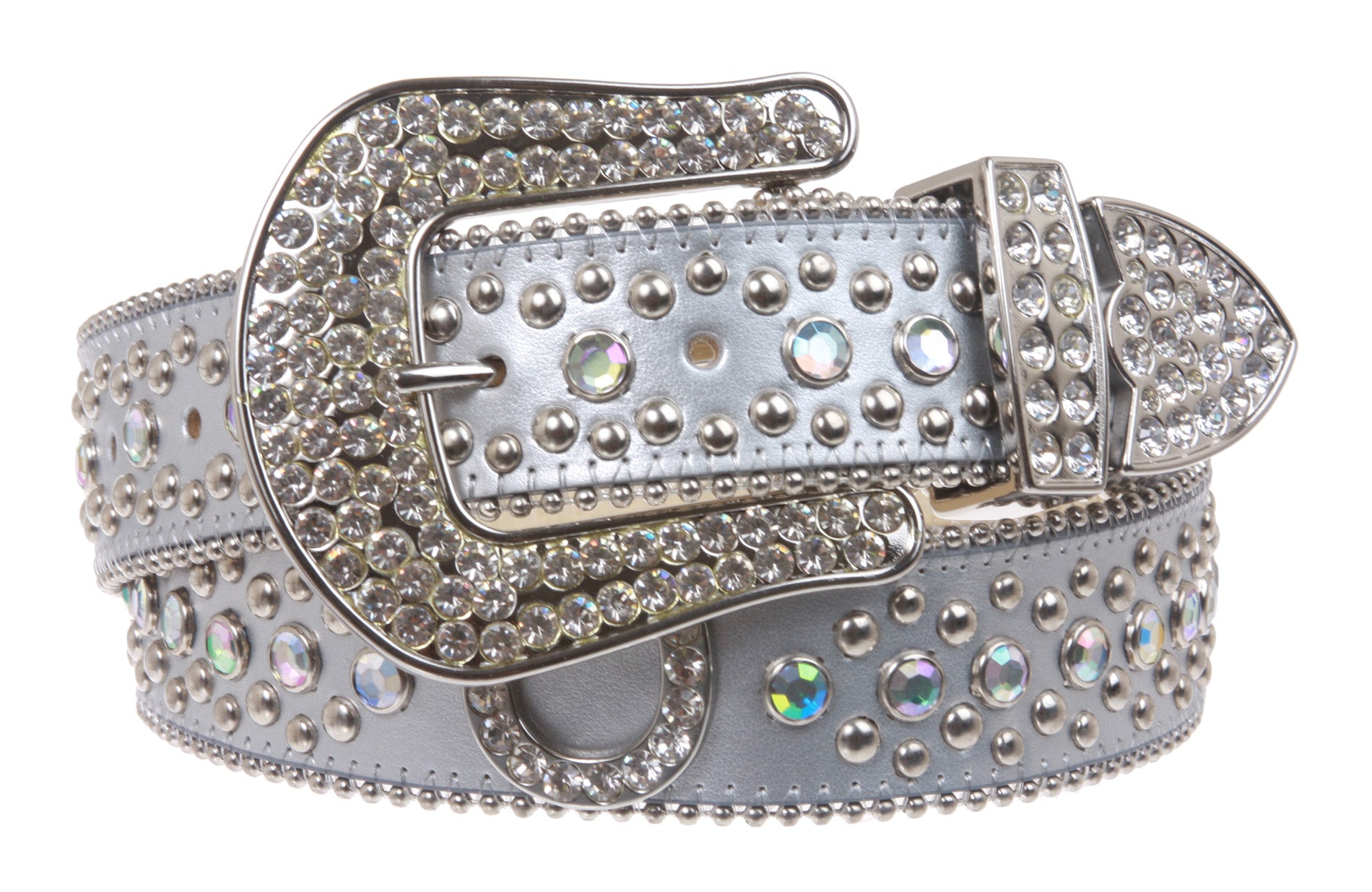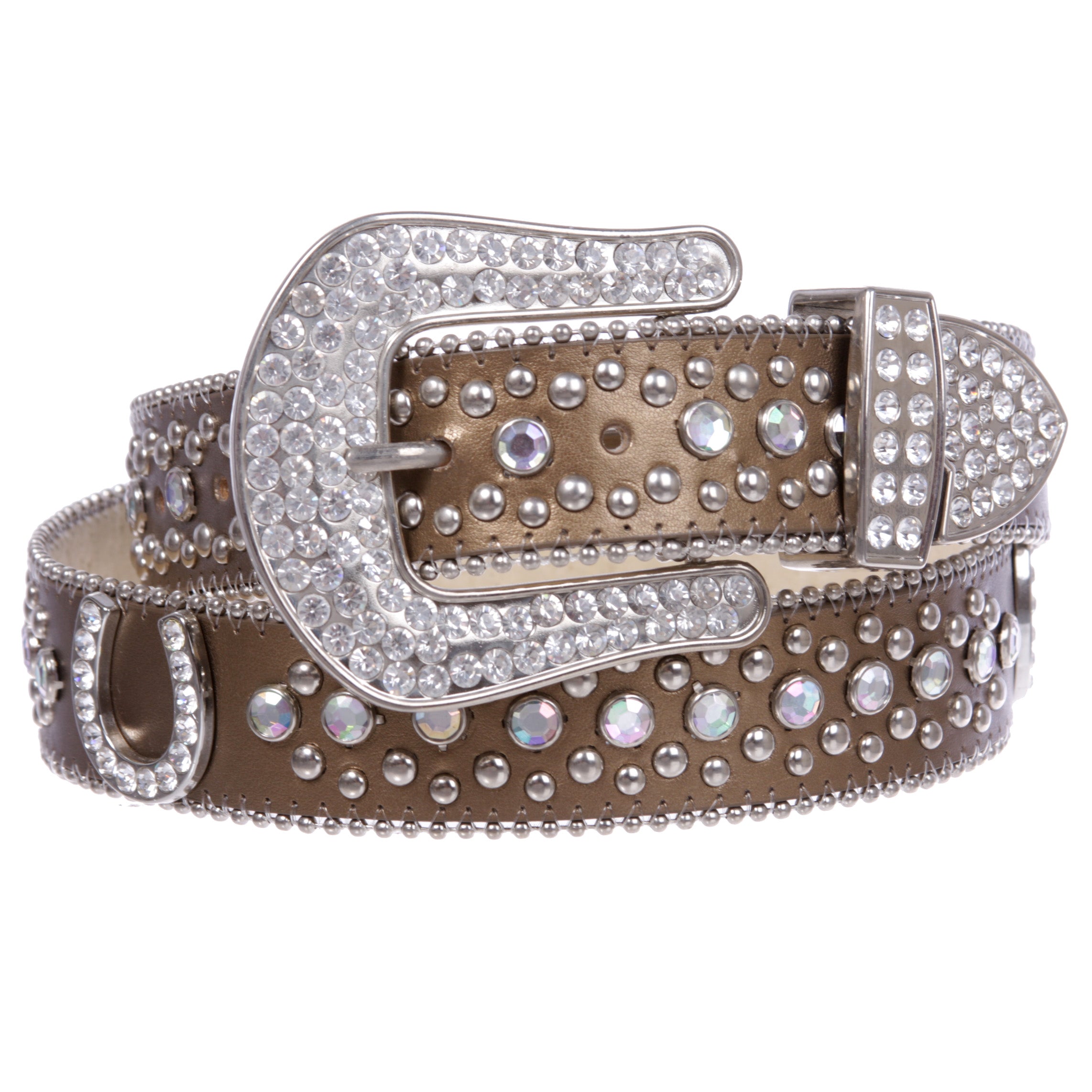 - Rhinestone silver studs and horseshoe conchos with 3 sets western style rhinestone buckle.