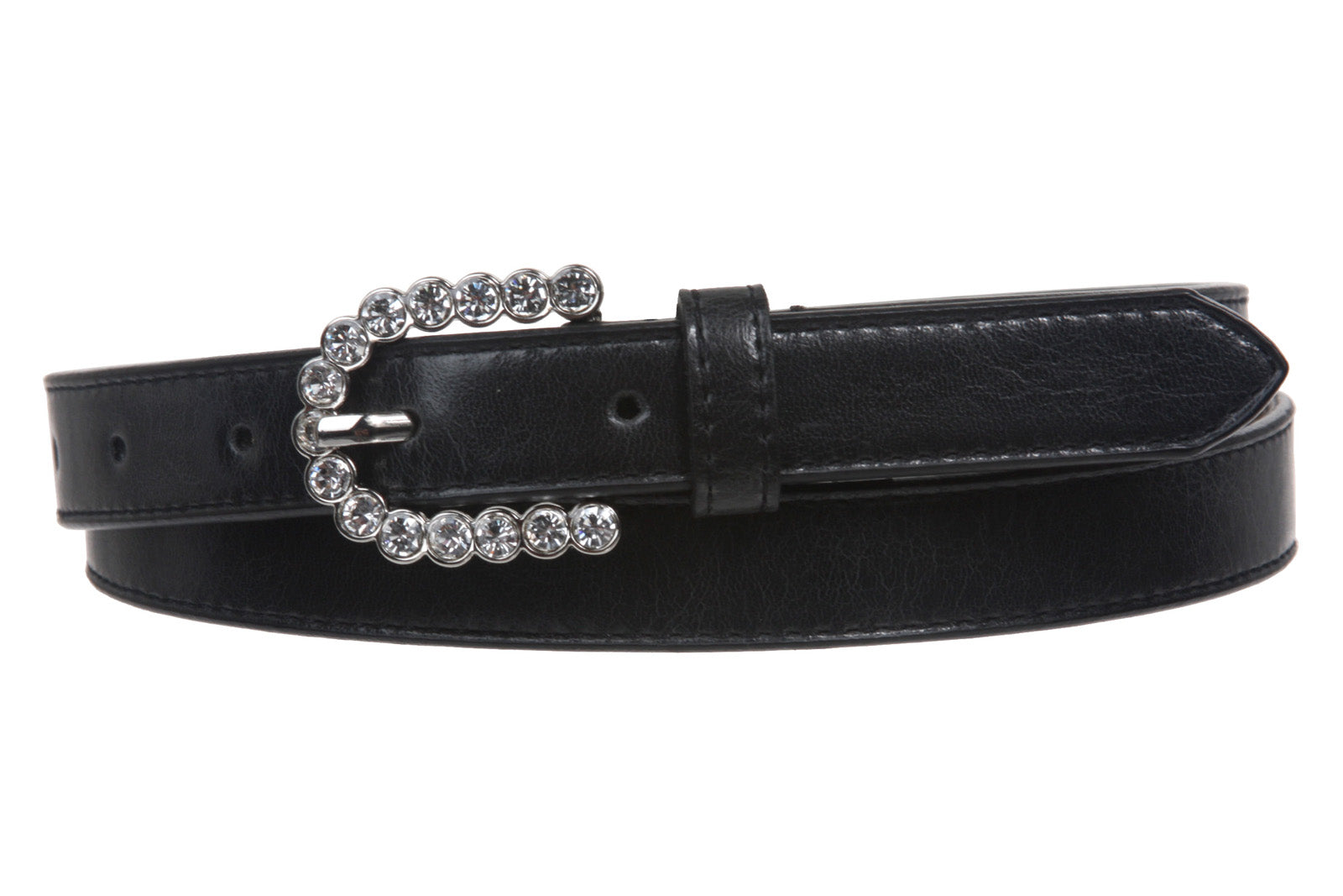 Women's 3/4" (19mm) Skinny Horseshoe Rhinestone Non Leather Belt