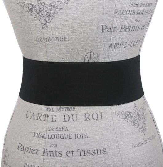 *Material: 30% quality glittered synthetic leather, 20% bonded leather, 30% synthetic leather, 50% stretch black color fabric (elastic); *Width of belt: 3" (75 mm); *Notes: the size chart does not include buckle length. There are total of five holes, 1" apart. It is recommended to select size from buckle fold to center hole that better matches measurement of your waist or where you wear this belt. It would be more comfortable to measure where you will wear the belt, add 1-2", and then pick the size where this number falls.