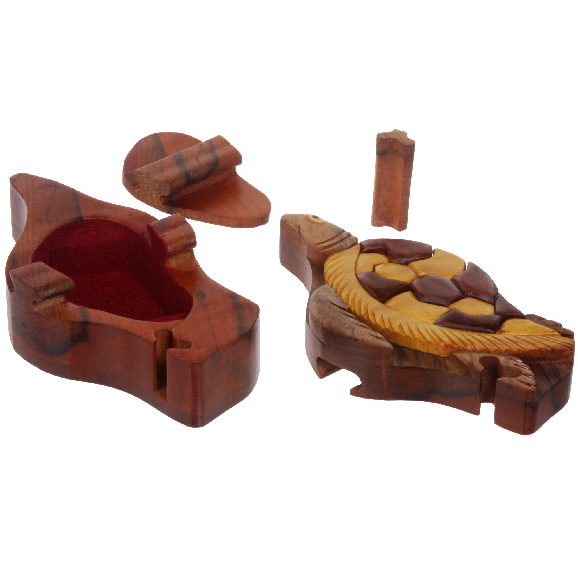 - This turtle shaped Secret jewelry box can only be opened if you know the secret. Perfect gift for that special someone. Beautifully Hand Made Wooden Box with Hand-carved embossed turtle on the lid. It has a secret locking device, although the big secret opening isn't all that difficult to figure out. It is brand new. Each individual box is unique, they may look different from each other since every part of the box is made of unique wood material