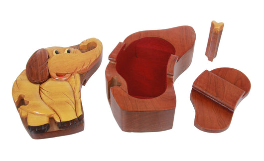 Handcrafted Wooden Elephant Shape Secret Jewelry Puzzle Box - Elephant